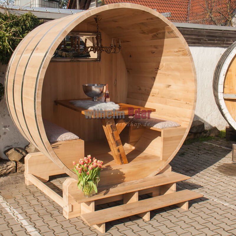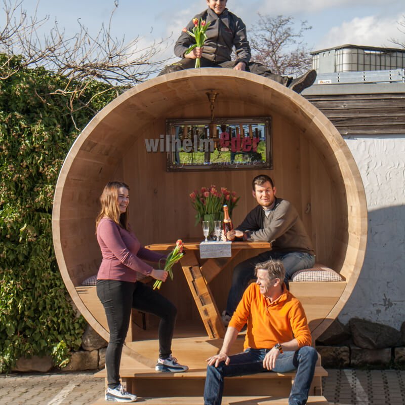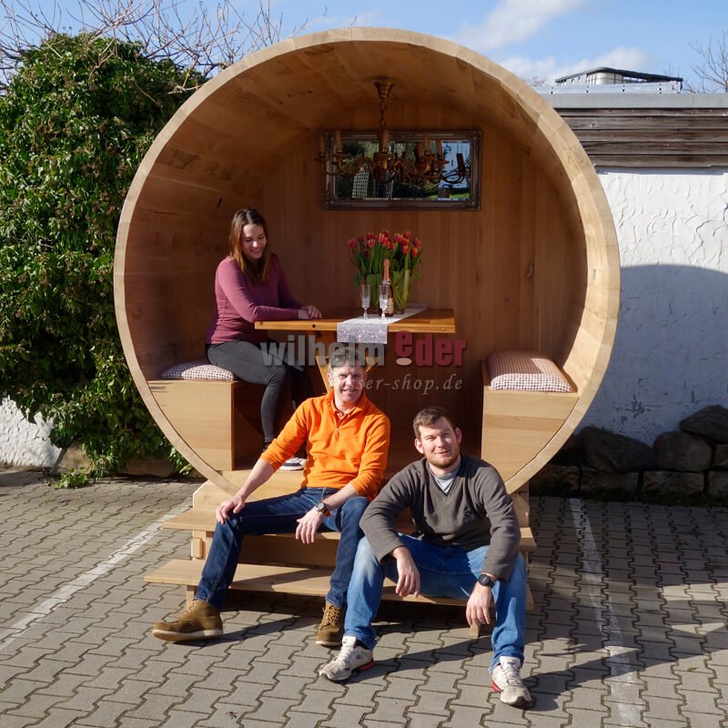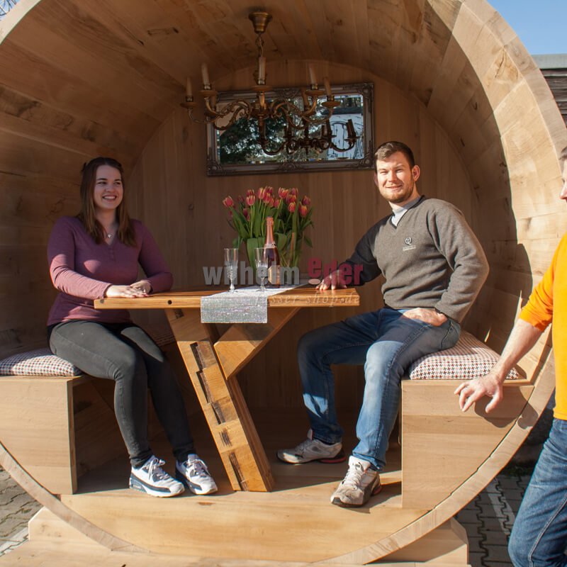 Admittedly, what you have just read was a rather unemotional description of how to manufacture it; but we would not be the Eder company you know if we had not also adapted this great idea for ourselves. Pretty soon the idea of creating a barrel arbor was born, which invites to a cosy get-together.