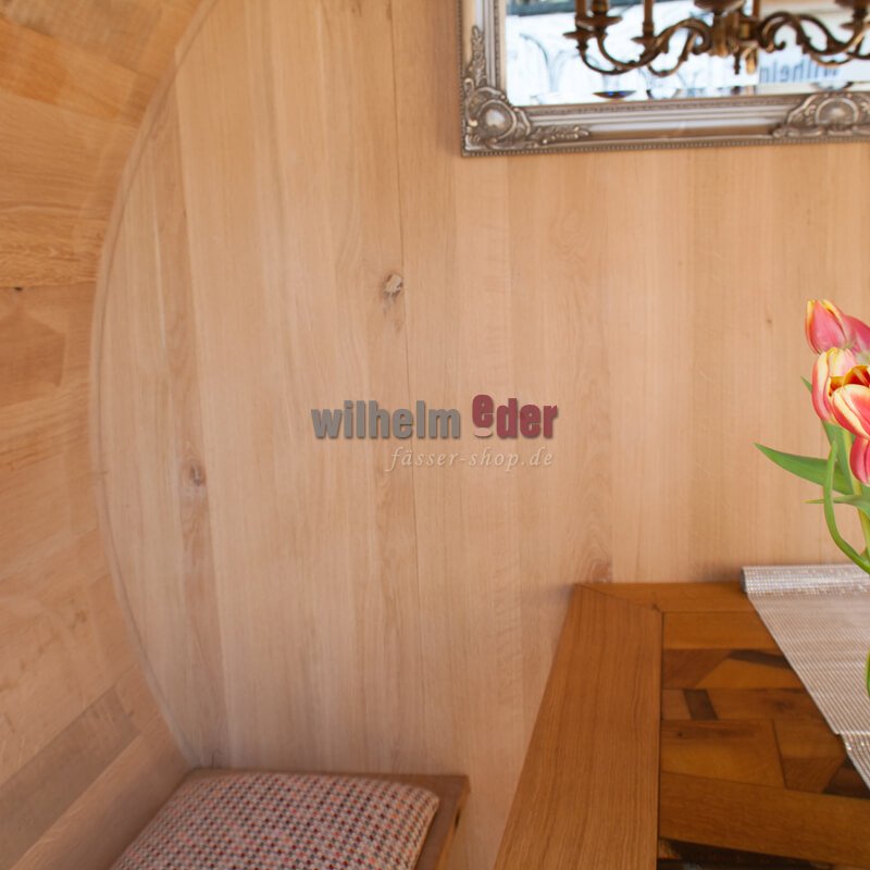 Slowly, after a quarter of a year’s work, the overall concept becomes visible. From further wood of the used vat we make a two-step staircase, the seat cushions are covered with high-quality leather and attached to the bench. And then they stand: our first 5 meeting points. We find it fascinating: although funnel-shaped, we still managed to keep loud noises “outside”. You can imagine our kind of test like this: the Meeting Point stands in our cooperage. There we always hammer, saw and screw. But if you sit down in the converted vat, you can relax and talk to your colleague or make a phone call. So the Meeting Point not only looks good, it also ensures quiet working inside.